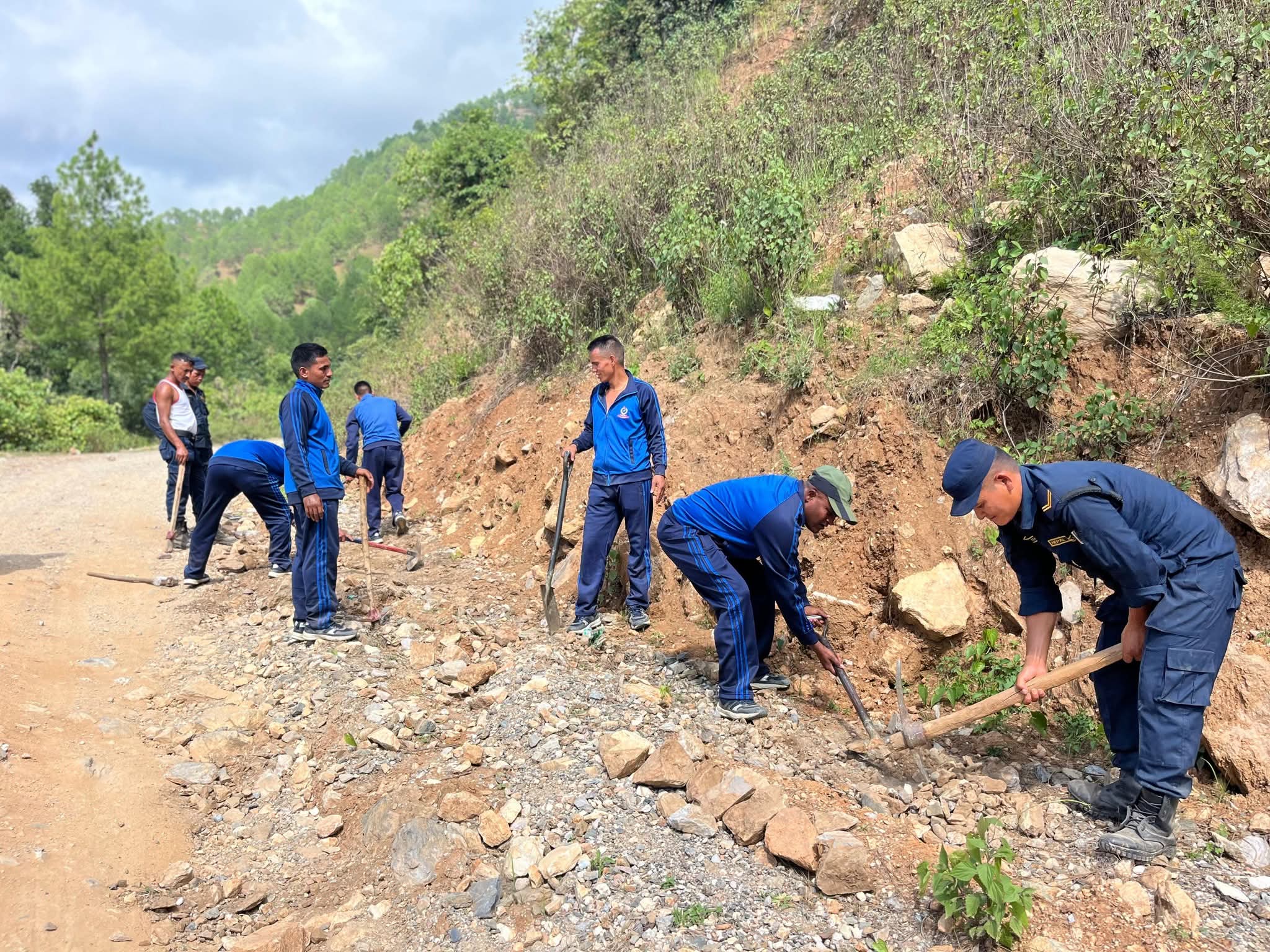 दुर्घटनालाई मध्यनजर गर्दै वर्षातले खाल्डाखुल्डी र बिग्रिएको सडकमा नाला खन्न तथा खाडल पुर्ने काम गरेको जिल्ला प्रहरी कार्यालय सल्यानका प्रहरी प्रमुख प्रहरी नायब उपरीक्षक डा. हेमबहादुर केसीले जानकारी दिनु भयो। प्रदेश राजधानी जाने मुख्य सडक नै जोखिमयुक्त भएपछि ४५ जना प्रहरी परिचालन गरेर सडक मर्मत गरिएको उहाको भनाइ छ । शान्तिसुरक्षामा खटिए पनि नेपाली नागरिकको हैसियतले आफूले खाल्डाखुल्डी पुर्ने तथा नाला खन्ने काम गरेको बताउनु भयो ।