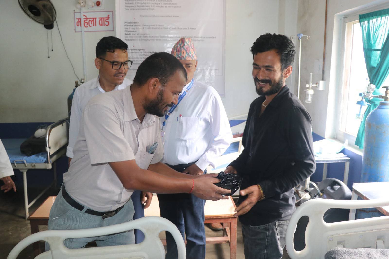 स्थापना दिवसको अवसरमा अस्पतालमा उपचार गराइरहेका बिरामीहरूलाई भेटी उनीहरूको स्वास्थ्य लाभको कामना गर्दै फलफूल वितरण गरिएको पार्टीका जिल्ला अध्यक्ष रमेशकुमार गौतमले बताउनु भयो । उहाँका अनुसार सामाजिक उत्तरदायित्वअन्तर्गत यस्तो कार्यक्रमको आयोजना गरिएको हो ।