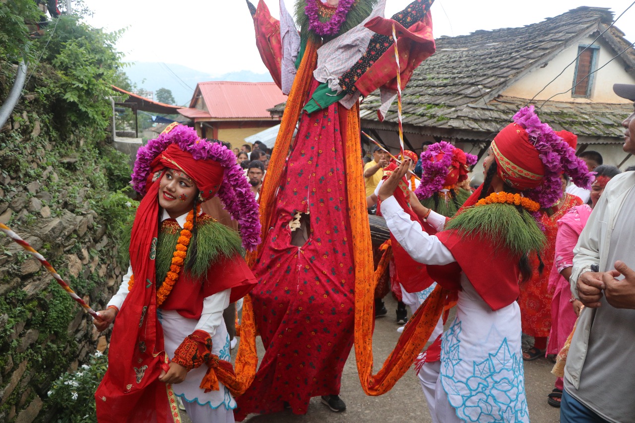 एक सातासम्म विभिन्न किसिमका जात्रा गरेर यहाँ गाईजात्रा पर्व मनाइन्छ । नेवार समुदायले जनै पूर्णिमाको दिन शनिबार र आइतबार गरी दुई दिन गाईजात्रा पर्व मनाएका हुन् । मृतकको सम्झनास्वरूप गाईजात्रा निकालेर नेवार समुदायले सदरमुकाम खलंगा बजार परिक्रमा गरेका थिए । गाईजात्रा हेर्नका लागि जिल्लाका विभिन्न क्षेत्रबाट सयौं युवकयुवती, वयष्क र ज्येष्ठ नागरिकको सहभागिता थियो । मल्लकालीन राजा प्रताप मल्लकी रानीले छोराको मृत्यु भएपछि विलाप गर्न थालेपछि उनको मन शान्त पार्न राजाले गाईजात्रा निकाल्न लगाई गाईजात्रा पर्व मनाउन थालिएको जनविश्वास रहेकै कारण मृतकको आत्माले शान्ति पाओस् भनेर गाईजात्रा पर्व मनाउने धार्मिक तथा परम्परागत विश्वास रहेको छ ।