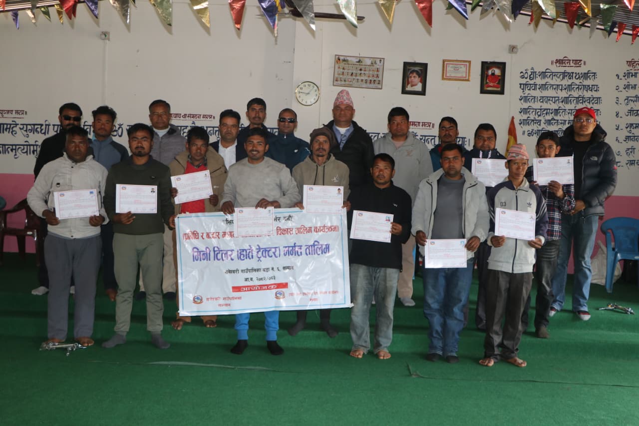 समापन कार्यक्रममा सहभागीहरूलाई आगामी दिनमा व्यावसायिक रूपमा अघि बढ्न प्रोत्साहन गर्ने उद्देश्यले प्रत्येक सहभागीलाई मिनी टिलर मर्मतसम्बन्धी आवश्यक औजारसहितको टुल्स सेट निःशुल्क वितरण गरिएको थियो । कार्यक्रमको सञ्चालन कार्यालयका सूचना अधिकारी ध्रुव खत्रीले गर्नुभएको थियो ।